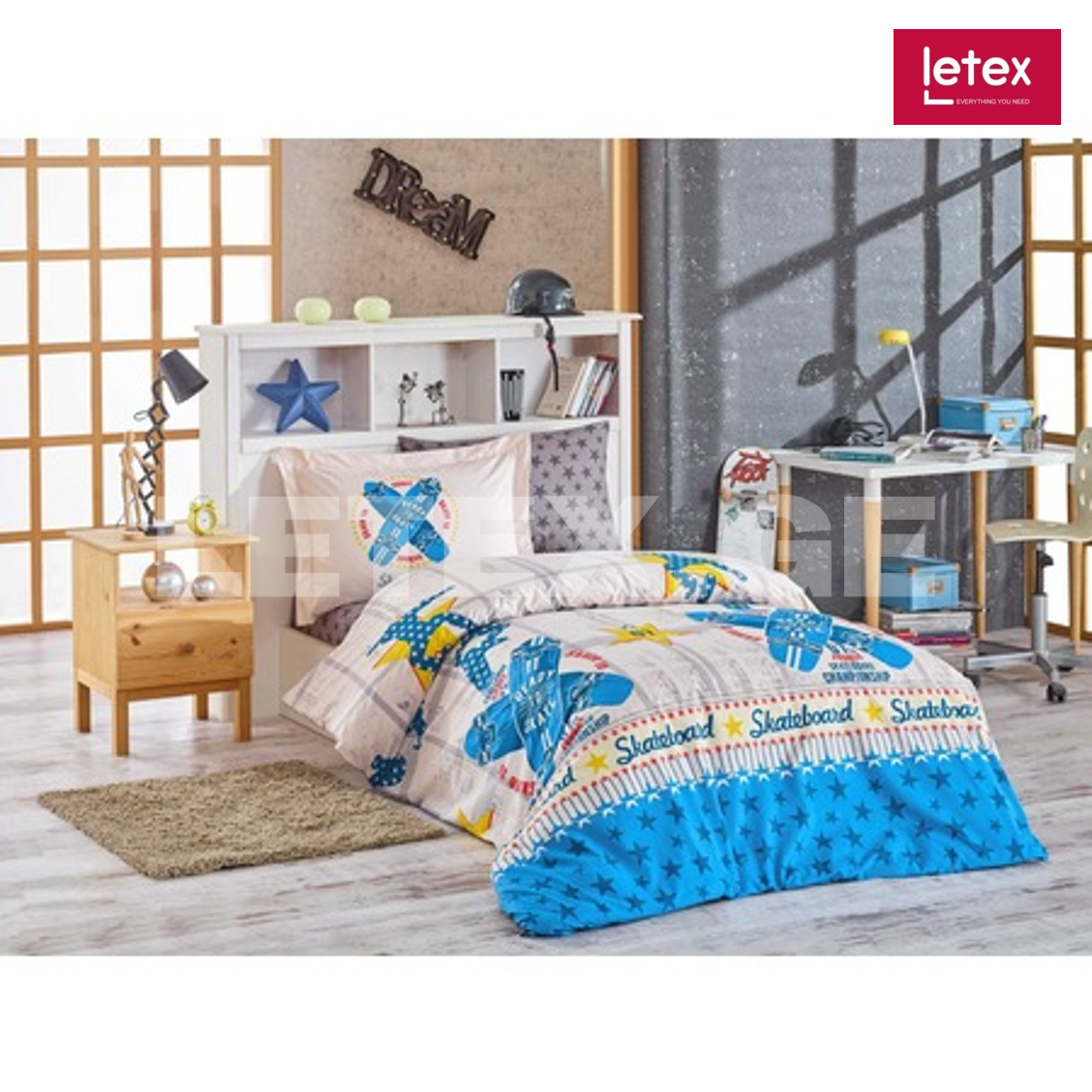 Hobby – Poplin ერთსაწოლიანი თეთრეული (Skateboard Mavi)