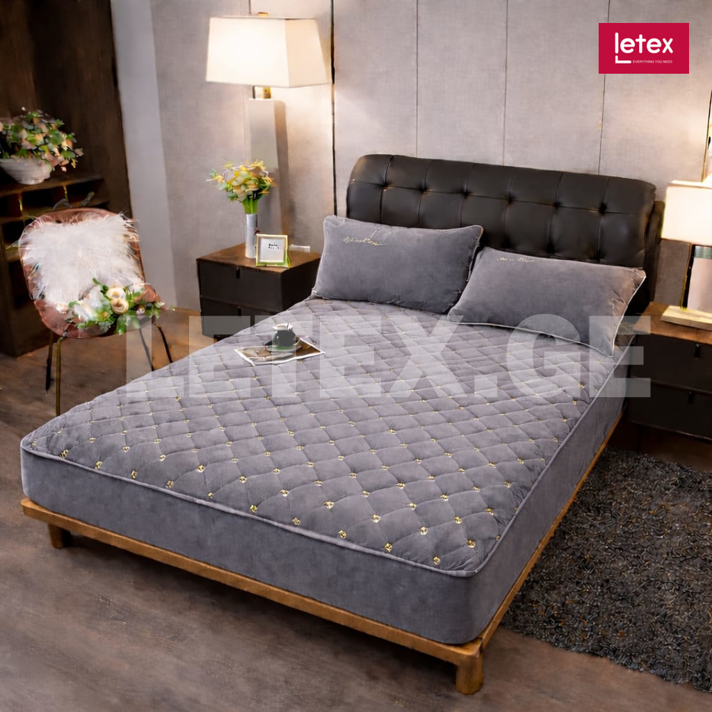 ხავერდის მატრასის დამცავი ბალიშის პირებით (160X200 სმ)